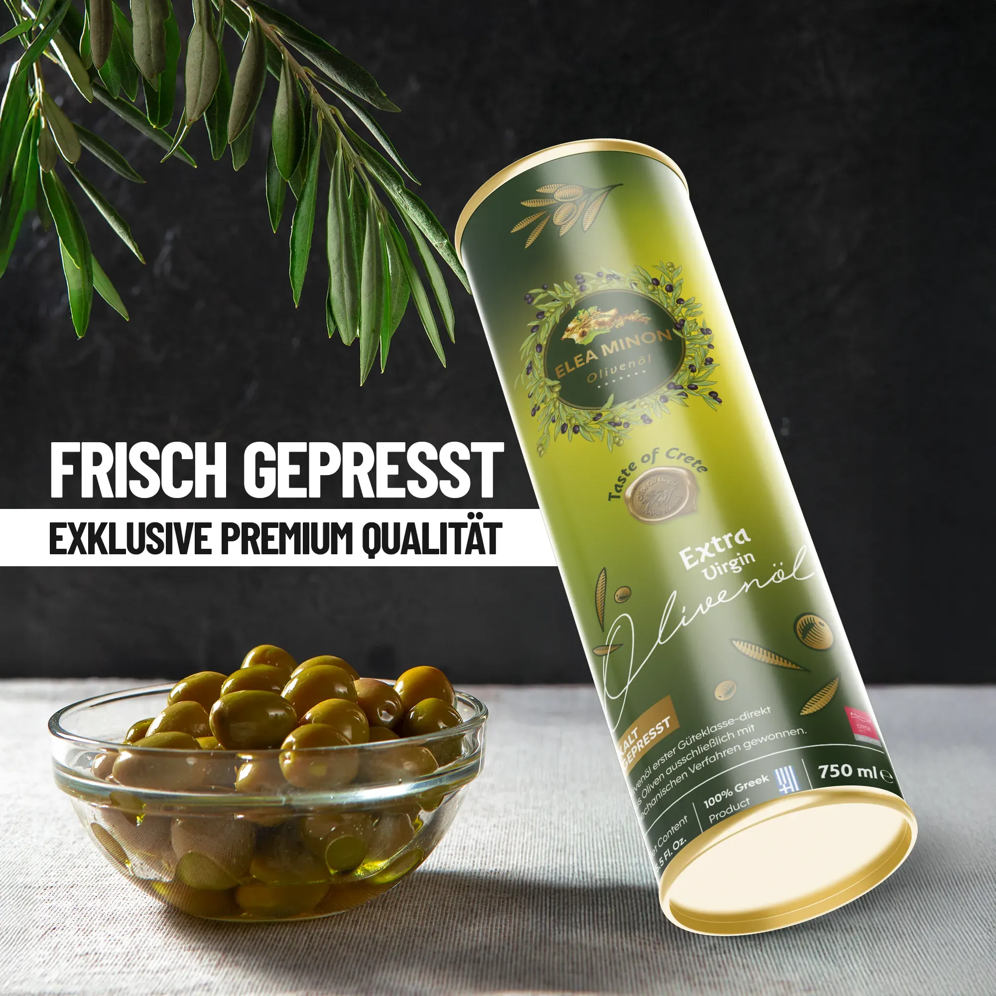 Dieses Olivenöl Geschenkset enthält 0,75L kaltgepresstes Extra Virgin Olivenöl aus den jahrhundertealten Olivenhainen Kretas. Das griechische Olivenöl wird in unserem Familienbetrieb mit größter Sorgfalt produziert und in einer hochwertigen Geschenkbox geliefert.